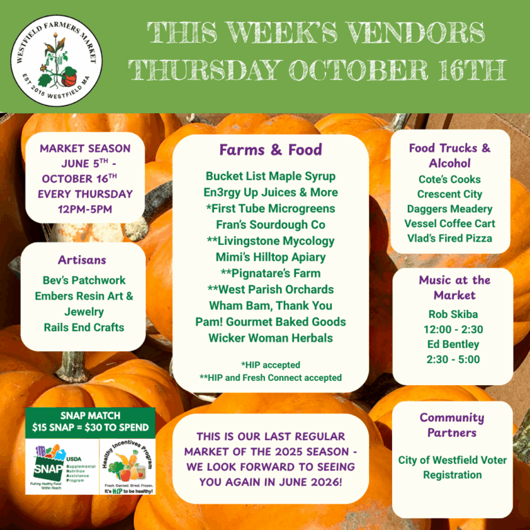 SNAP Match: We double your SNAP benefits up to an extra $15 per week. Visit the SNAP Tent to buy SNAP tokens and get SNAP Match which can be used on any SNAP eligible items such as produce, fruit and vegetable seedlings, and all market food except hot food and flowers.